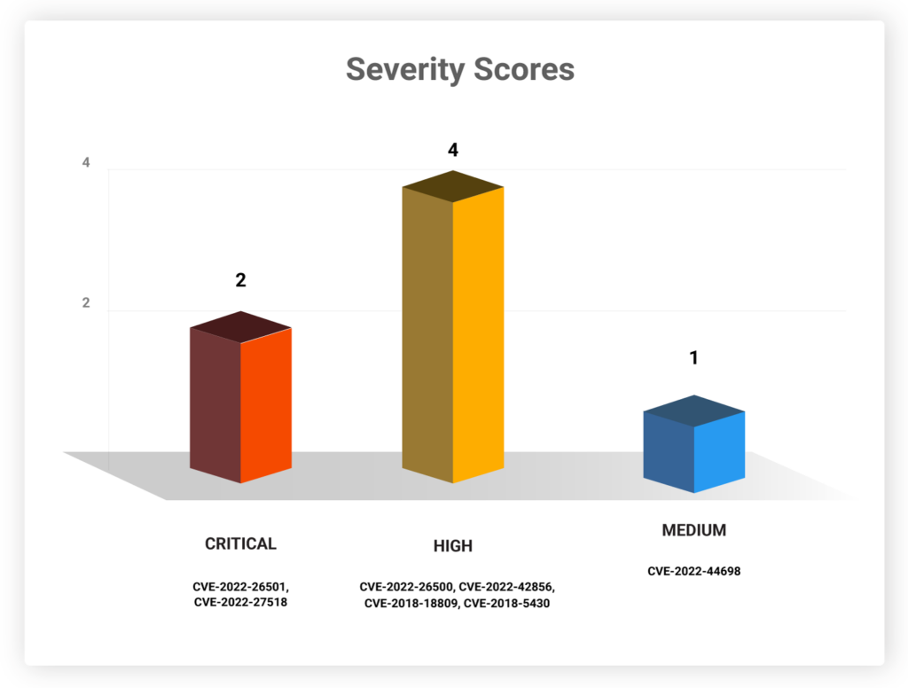 Most vulnerabilities are ranked high and critical on the CVSS scale. CVE-2022-44698 is given a 5.4 rating.