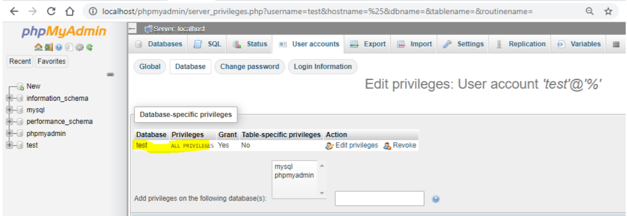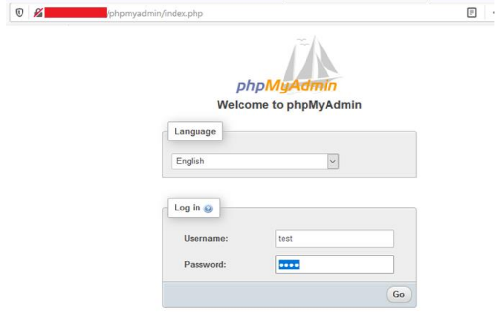 Figure 05: Log in to phpMyAdmin with โtestโ user credentials.