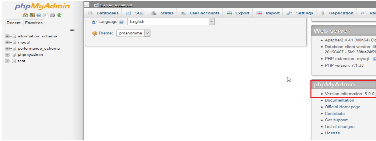 Figure 01: phpMyAdmin Installed Version 5.0.0